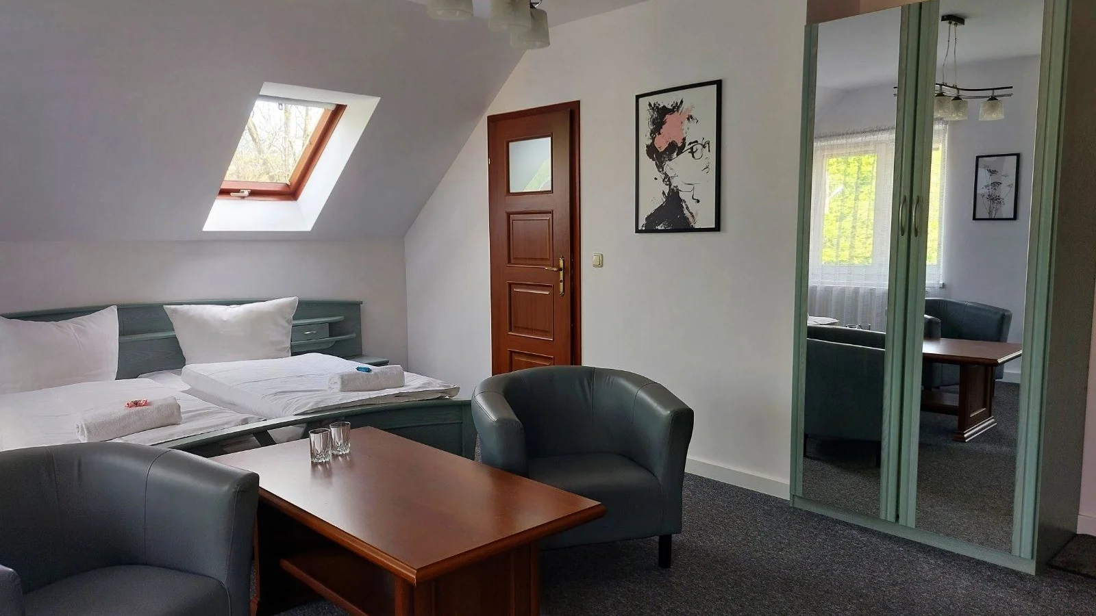 - 1 łóżko podwójne oraz 1 pojedyncze